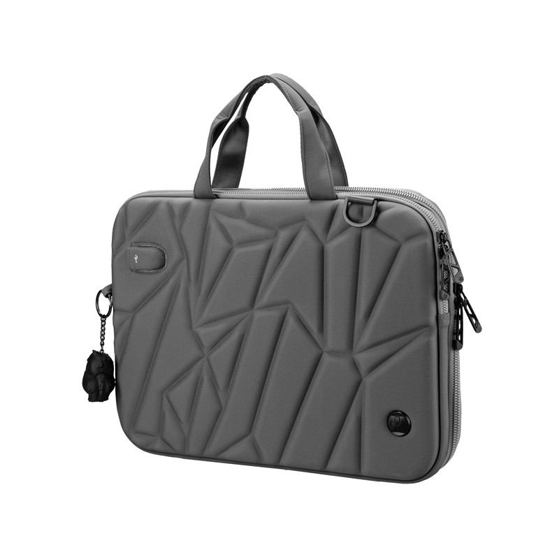 Elegante borsa porta notebook realizzata in poliestere ecologico resistente all’acqua. Dotata di scomparto rivestito in morbido peluche progettato per adattarsi a qualsiasi pc o tablet di dimensioni fino a 16”. Ulteriore scomparto con tasca dedicata per powerbank. Porta di ricarica USB brevettata con design del cavo integrato. Tracolla regolabile inclusa. Dimensioni 30x42x4cm, peso 0,88kg.