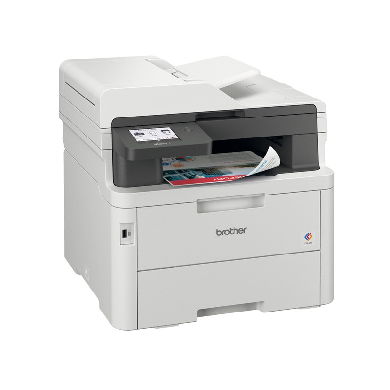 Stampante multifunzione LED a colori con WiFi, rete cablata, USB. Stampa veloce con connettività flessibile, a colori, per fornire documenti di alta qualità. • Stampa fino a 26 pagine al minuto • Gigabit ethernet, WiFi a 5 GHz e USB • Touchscreen a colori da 8,8cm • Vassoio carta da 250 fogli • Alimentatore automatico documenti (ADF) da 50 fogli • Inclusi toner inbox nero e a colori fino a 1.000 pagine. Disponibili separatamente toner ad alta a capacità fino a 3.000 pagine mo nocromatiche e fino a 2.300 pagine a colori.