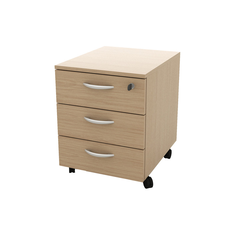 Cassettiera a 3 cassetti su ruote. Serratura sul primo cassetto, guide metalliche. Dimensioni utili dei cassetti: L31,8 x P38,3 x H10,9cm. Dimensione totale: L41 x P50 x H52,2cm. Colore struttura e dei cassetti: rovere. Fornita in kit DA ASSEMBLARE.