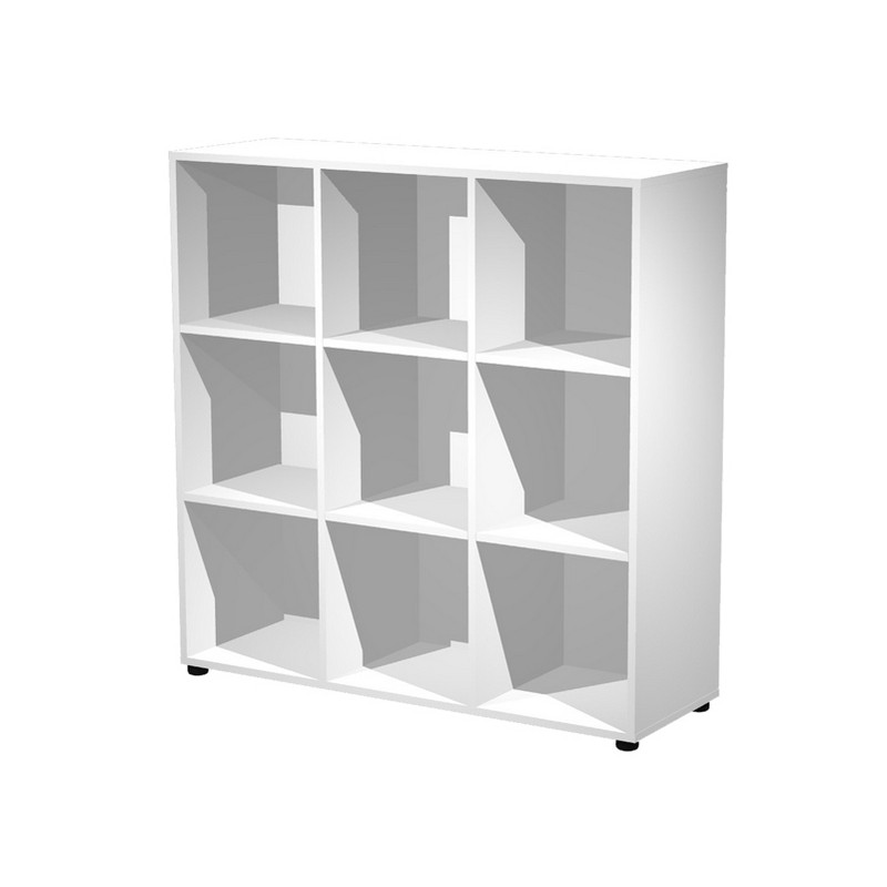 Casellario con 9 caselle a giorno L119 x P40 x H121,6cm (piedini compresi). Contenitori a casellario realizzati in melaminico bilaminato antigraffio e antiriflesso conforme alle norme UNI e EN classe E1. Componibili per affiancamento. Top, fianchi, ripiani e base sp. 18mm. Retro sp. 10mm. Dimensione utile per singola casella: L37,2 x P36,6 x H37,2cm.