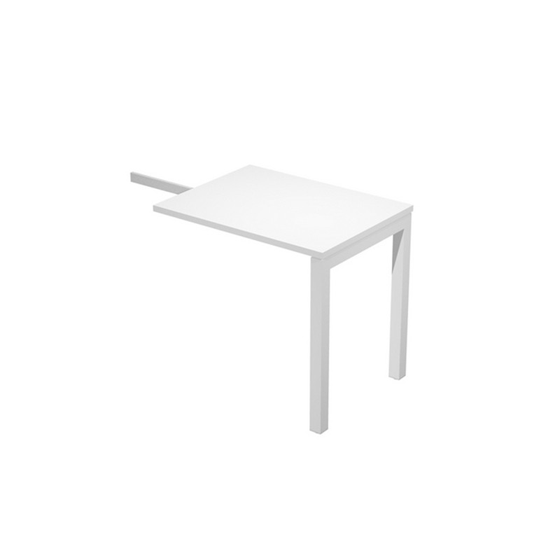 Allungo reversibile dx/sx per scrivanie a postazione singola. Dimensioni: L80 x P60 x H74,6cm. Le scrivanie per postazione singola o multipla, sono in bilaminato nobilitato melaminico conforme alle norme UNI e EN classe E1, antigraffio ed antiriflesso, hanno sp. 25 mm con bordo sp. 2 mm in ABS resistente agli urti. Sono caratterizzate da robuste gambe a ponte in metallo a sezione quadrata (50 x 50 mm) verniciate a polveri epossidiche nel colore grigio alluminio, complete di piedini regolabili in altezza.