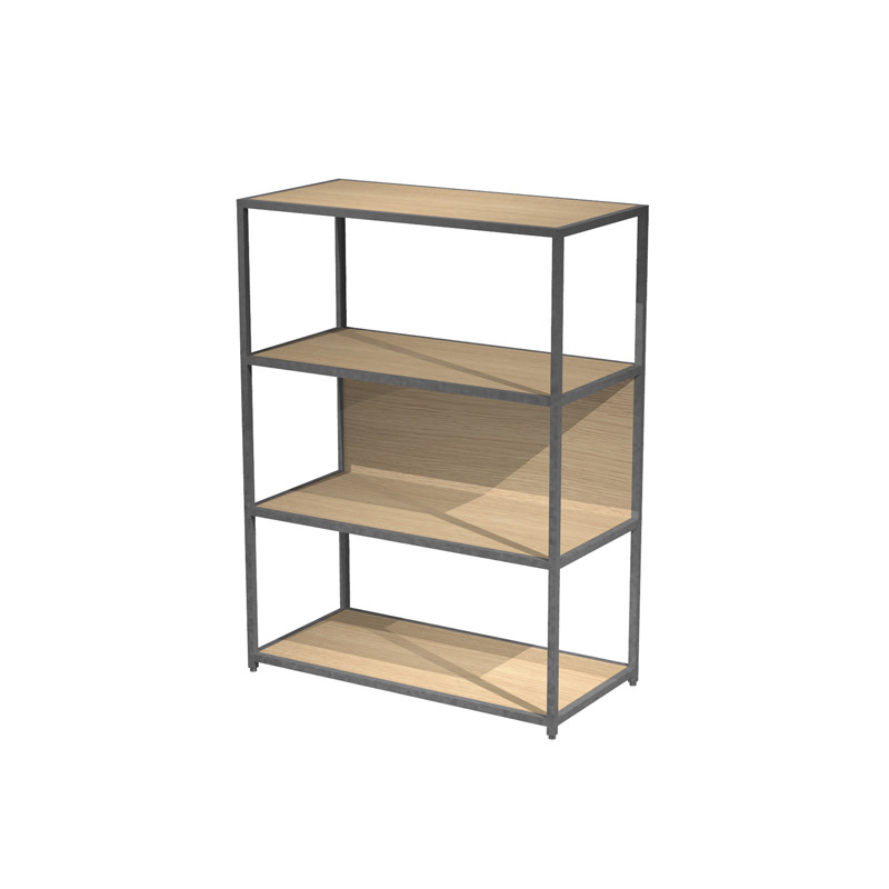 Libreria 4 ripiani Modular - 90 x 44 x 122 cm - struttura metal antracite - rovere