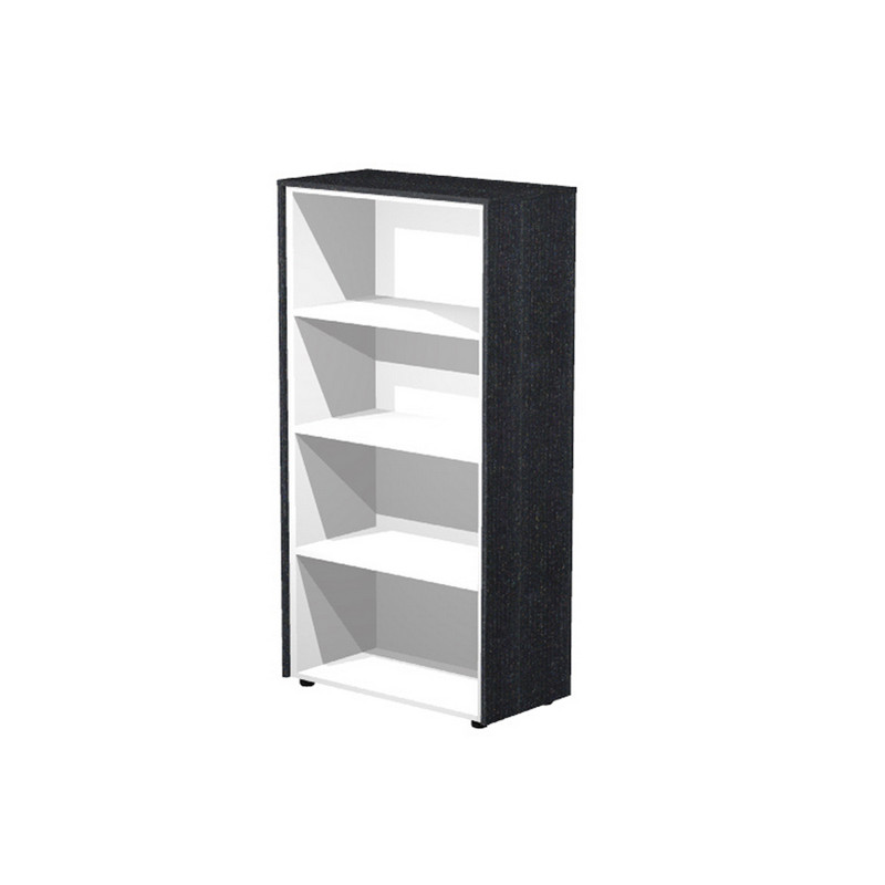 Struttura colore grigio alluminio. Top e fianchi finitura (sp. 14 mm) colore nero venato frassino e ciliegio arabis. Top, base e fianchi sp. 18 mm. Ripiani regolabili in altezza sp. 25 mm. Schiena sp. 10 mm. Piedini livellabili dall’interno. Disponibili moduli singoli e doppi con top finitura unico. I mobili possono essere allestiti a giorno o completi di ante con serratura. Mobile medio-alto a giorno, 3 ripiani spostabili. L82,8 x P43 x H152,2cm.