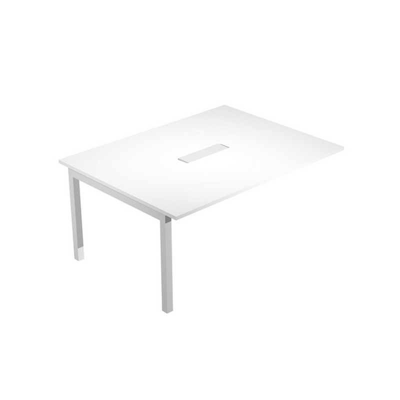 Modulo aggiunta per tavolo riunioni Agorà con piano 160 x 120 cm, in spessore 25 mm, con assenza di spigoli vivi, bordato in abs sp.2 mm. Realizzato in materiale melaminico, classe E1, con finitura antigraffio e antiriflesso. Struttura in metallo, gambe a profondità ritotta in metallo a sezione quadrata 50x50mm. in finitura grigio alluminio. Piano dotato di ampio passacavi rettangolare centrale.