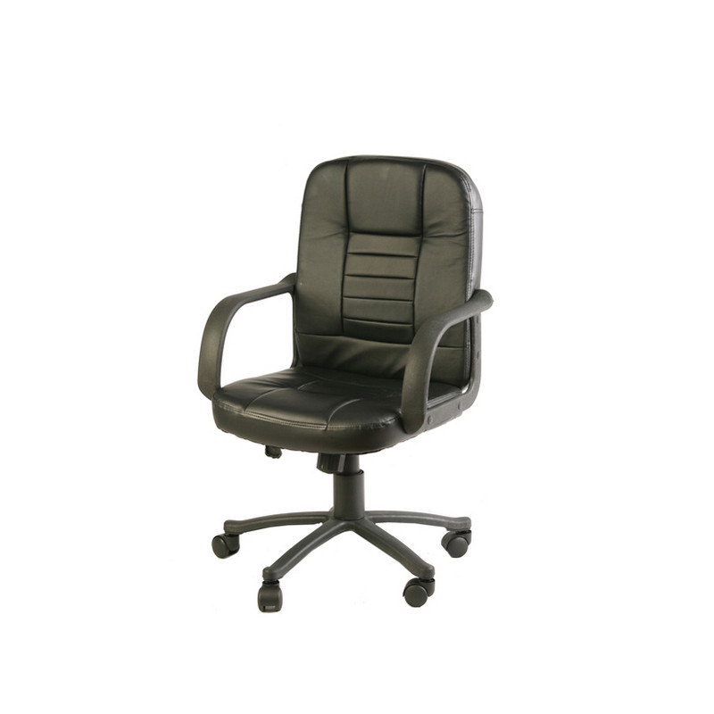 POLTRONA A SCHIENALE MEDIO RIVESTITO IN PU. BRACCIOLI E BASE CON RUOTE IN NYLON. MECCANISMO OSCILLANTE BLOCCABILE, MANOPOLA PER LA REGOLAZIONE DI TENSIONE PER IL PESO DEL CORPO. ELEVAZIONE A GAS. Larghezza fuori tutto cm 60 ; Larghezza seduta cm 46; Profondità cm 56; Altezza cm 88/98; H.seduta cm 43-53.