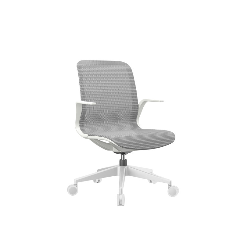 Poltrona direzionale girevole con elevazione a gas - meccanismo oscillante - base nylon. Rivestimento seduta in rete bianca. Braccioli inclusi (non rimovibili). Alt.tot.: 88-111cm; Prof.tot.: 66cm; Alt.schienale: 51cm; Larg.schienale: 46cm; Larg.seduta: 49cm; Prof.Sedile: 46cm; Altezza sedile: 44 - 55cm.