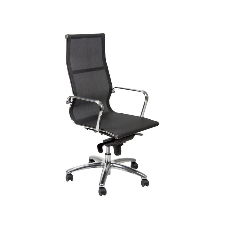 Poltrona direzionale adatta ad un uso intenso. Base in acciaio cromo Ø66cm. Struttura in acciaio tubolare ellittico cromo. 5 ruote in nylon Ø5cm. Sedile in rete. Braccioli inclusi. Meccanismi: elevazione a gas, meccanismo oscillante con blocchi. Schienale fisso con supporto lombare.