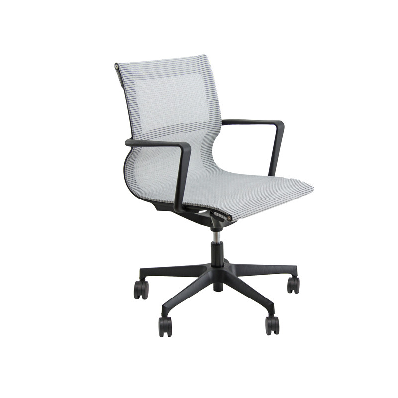 Poltrona direzionale girevole con elevazione a gas - meccanismo oscillante libero - schienale fisso in rete. Braccioli inclusi (non rimovibili). Alt.tot.: 91-99cm; Prof.tot.: 68cm; Alt.schienale: 52cm; Larg.schienale: 50cm; Larg.seduta: 50cm; Prof.Sedile: 49cm; Altezza sedile: 44-52cm.