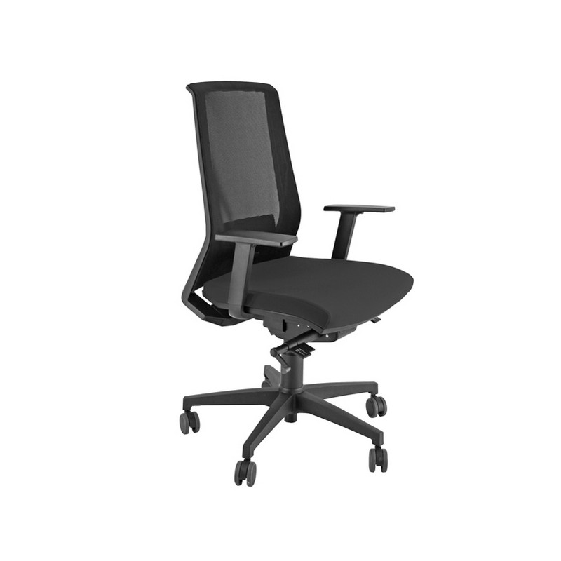 Poltrona semidirezionale ergonomica H12 (adatta per uso intenso). Schienale alto in rete nera con supporto lombare. Struttura in faggio multistrato e rivestimento in acrilico ignifugo. Braccioli regolabili e base in nylon. Meccanismo syncro con 4 blocchi. Meccanismo anti shock, meccanismo a contatto permanente. Schienale regolabile up-down. sedile con traslatore regolabile in profondità. Elevazione a gas.