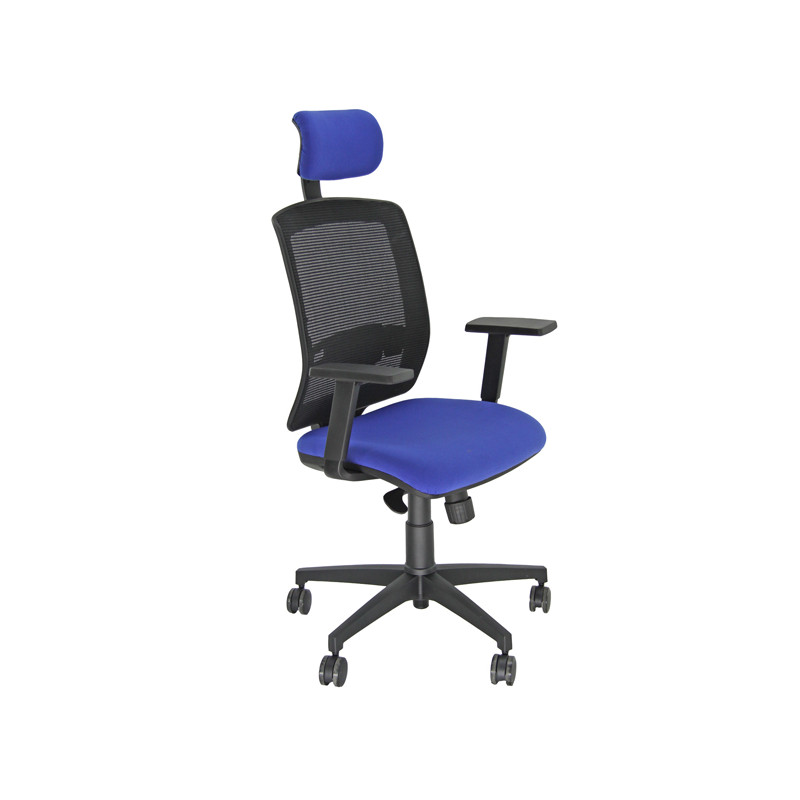 meccanismo a contatto permanente - Schienale regolabile up-down - supporto lombare regolabile; Rivestimento in tessuto "PLUS - Bondai" 100% poliestere no flame e certificazioni di infiammabilità 1.IM UNI 9175. Completa di braccioli regolabili e poggiatesta. Alt.tot.: 115-127cm; Prof.tot.: 70cm; Alt.schienale: 56cm; Larg.schienale: 46cm; Larg.seduta: 51cm; Prof.Sedile: 46cm; Alt. sedile: 42-54cm.