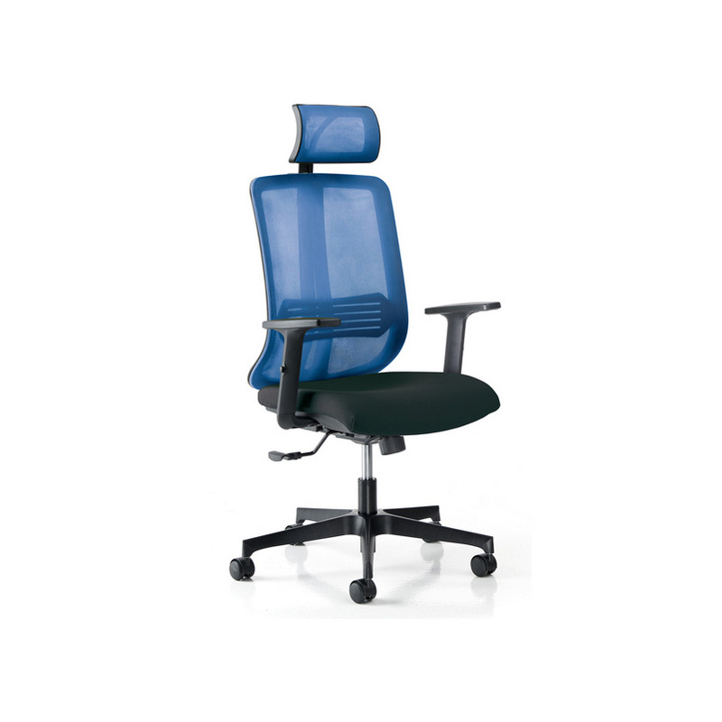 Sedia girevole operativa con schienale in rete - supporto lombare regolabile - elevazione a gas - meccanismo synchro con 3 blocchi antishock con traslatore e variatore di forza a contatto permanente; Rivestimento in tessuto "PLUS - Bondai" 100% poliestere no flame e certificazioni di infiammabilità 1.IM UNI 9175. Completa di braccioli regolabili e poggiatesta. Altezza totale: 124-134cm; Profondità tot: 68cm; Alt. schienale: 58cm (80); Larghezza schienale: 46cm; Larghezza sedile: 48cm; Profondità sedile: 47cm; Alt. sedile: 42-55cm.