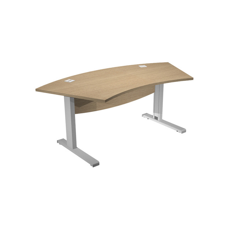 Scrivanie direzionali in materiale melaminico classe E1 con finitura antigraffio e antiriflesso. Piano sagomato di 190x96xH73cm con pratici passacavi colore alluminio. Bordo antiurto in ABS 2mm. Gambe scrivania nelle versione a L tutto in metallo. Piedini regolabili. Controventatura strutturale in melaminico. E' possibile ampliare la superficie di lavoro con l'allungo laterale (cod.82948) e con la cassettiera alta complanare al piano di profondità 80cm (cod.82949).
