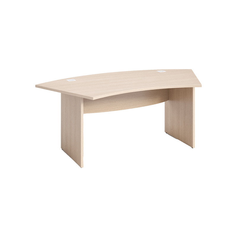 Scrivanie direzionali in materiale melaminico classe E1 con finitura antigraffio e antiriflesso. Piano sagomato di 190x96xH73cm con pratici passacavi colore alluminio. Bordo antiurto in ABS 2mm. Gambe scrivania nelle versioni tutto pannello. Piedini regolabili. E' possibile ampliare la superficie di lavoro con l'allungo laterale (cod.82948) e con la cassettiera alta complanare al piano di profondità 80cm (cod.82949).