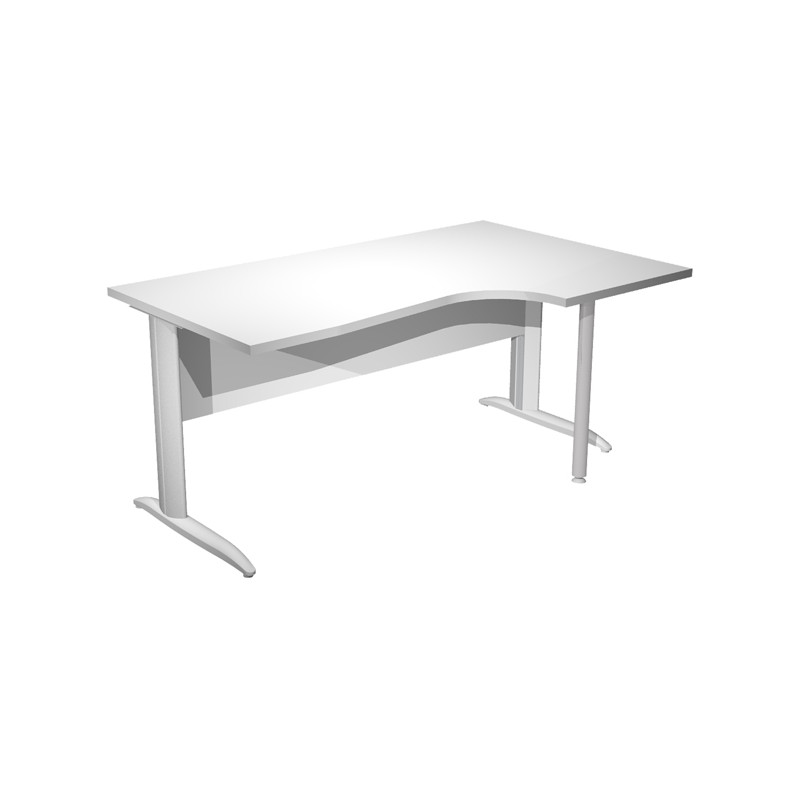Scrivania compact destro sagomata con fianchi metal ad L grigio alluminio. Spessore 22mm. Completi di canalina passacavi e piedini regolabili in altezza e supporto metal. Desktop con bordo anti urto in ABS da 2mm. Dimensioni: 160x60/80/100x72cm.