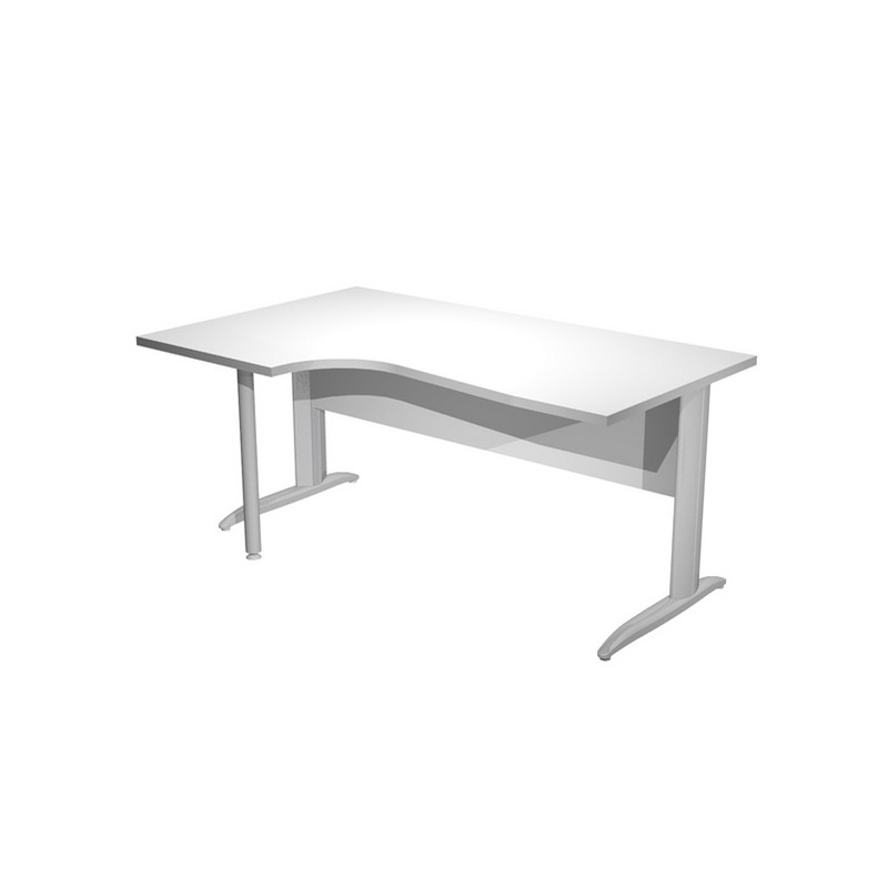 Scrivania compact sinistro sagomata con fianchi metal ad L verniciati effetto cromato. Spessore 22mm. Completi di canalina passacavi e piedini regolabili in altezza e supporto metal. Desktop con bordo anti urto in ABS da 2mm. Dimensioni: 160x60/80/100x72cm. Piano bianco.