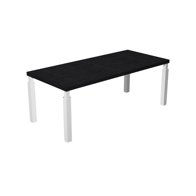 Scrivania direzionale con quattro gambe in metallo a sezione quadrata complete di piedini regolabili in altezza per un perfetto livellamento. Le gambe hanno sezione 70x70mm sul fusto e 40x40 mm nella parte alta e si agganciano al desktop ognuna con una robusta piastra metallica. Desktop (sp. 38 mm) con bordo antiurto in ABS (sp. 2mm). Le gambe, in entrambe le versioni di colore, sono impreziosite da dettagli e particolari cromati. Gambe bianco lucido Dimensioni: 210x90xH76,2cm