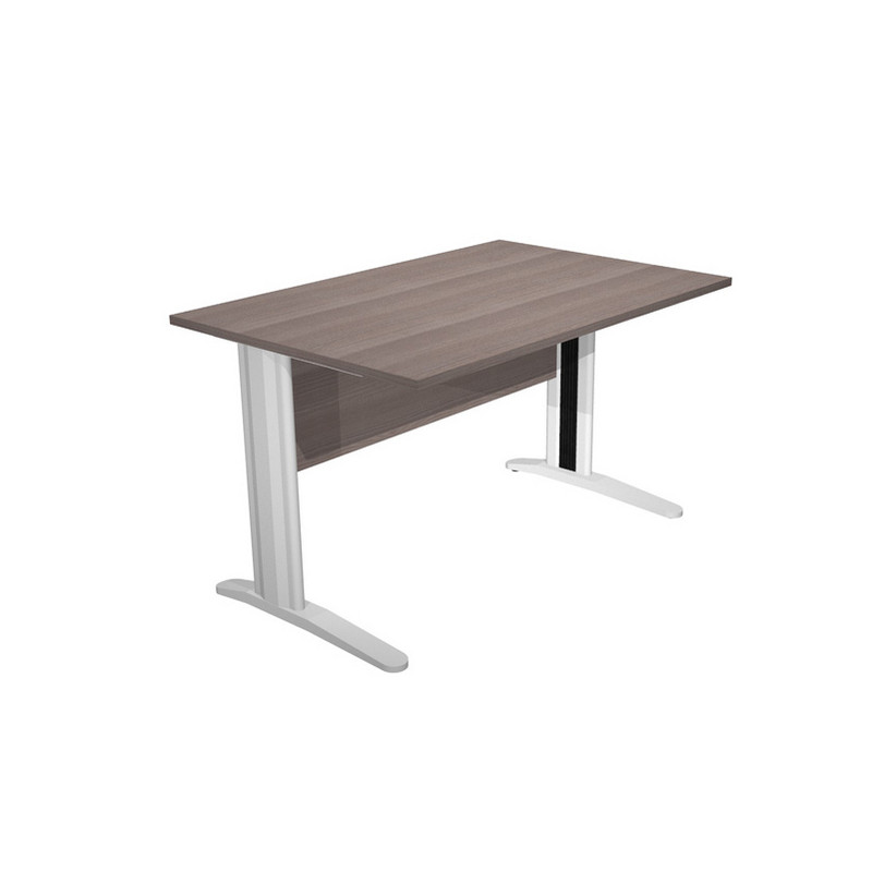 Scrivanie con dimensioni conformi alle normative sulla sicurezza dei posti di lavoro in ufficio. Bordatura dei piani in ABS 2mm antishock ed assenza di spigoli vivi. Le scrivanie sono disponibili nella versione con fianchi pannello in melaminico (sp. 22 mm) o con fianchi in metallo ad L verniciati effetto cromo completi di piedini regolabili in altezza e canalina passacavi ispezionabile. Dimensioni: L120 x P80 x H72cm