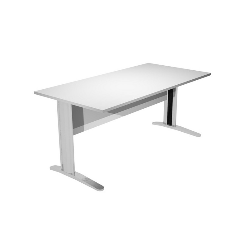 Scrivanie con dimensioni conformi alle normative sulla sicurezza dei posti di lavoro in ufficio. Bordatura dei piani in ABS 2mm antishock ed assenza di spigoli vivi. Le scrivanie sono disponibili nella versione con fianchi pannello in melaminico (sp. 22 mm) o con fianchi in metallo ad L verniciati effetto cromo completi di piedini regolabili in altezza e canalina passacavi ispezionabile. Dimensioni: L120 x P80 x H72cm