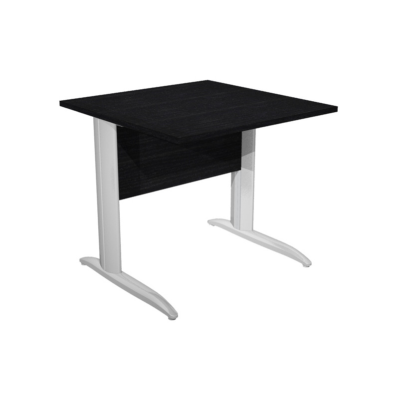 Scrivanie con dimensioni conformi alle normative sulla sicurezza dei posti di lavoro in ufficio. Bordatura dei piani in ABS 2mm antishock ed assenza di spigoli vivi. Le scrivanie sono disponibili nella versione con fianchi pannello in melaminico (sp. 22 mm) o con fianchi in metallo ad L verniciati effetto cromo completi di piedini regolabili in altezza e canalina passacavi ispezionabile. Dimensioni: L80 x P80 x H72cm