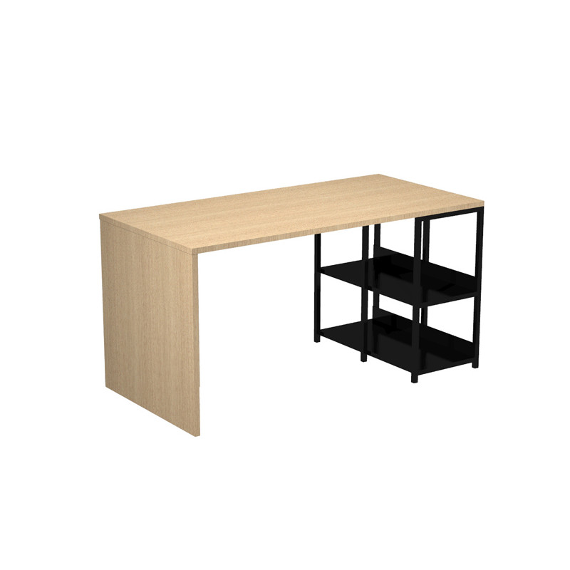 Postazione di lavoro home-office ideale per lo smart working. Le dimensioni compatte la rendono idonea per un allestimento domestico anche in ambienti con poco spazio a disposizione. Estrema versatilità grazie alla possibilità di allestire la robusta struttura metallica che sorregge il desktop sia sulla destra che sulla sinistra dello stesso. Design minimal e stile nordico industriale si fondono in un equilibrio perfetto fra semplicità e funzionalità.
