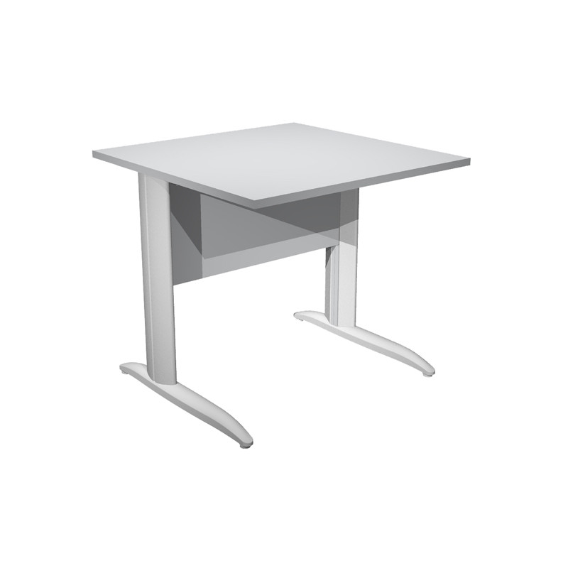 Scrivanie con dimensioni conformi alle normative sulla sicurezza dei posti di lavoro in ufficio. Bordatura dei piani in ABS 2mm antishock ed assenza di spigoli vivi. Le scrivanie sono disponibili nella versione con fianchi pannello in melaminico (sp. 22 mm) o con fianchi in metallo ad L verniciati effetto cromo o grigio alluminio RAL 9006, completi di piedini regolabili in altezza e canalina passacavi ispezionabile. Dimensioni: L80 x P80 x H72cm