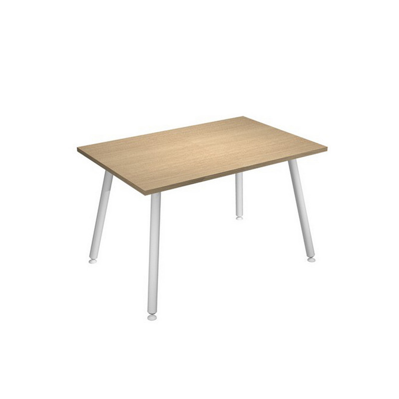 Linea di arredo operativo dal design innovativo e dinamico caratterizzata dalle gambe in metallo cilindriche inclinate delle scrivanie e dei tavoli rotondi. Robusti piani in melaminico sp. 22 mm con bordo antishock resistente agli urti in ABS 2mm. Gambe in metallo verniciato bianco (diam. 50 mm) complete di piedini livellabili in altezza.