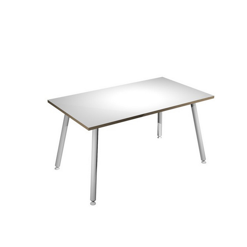 Linea di arredo operativo dal design innovativo e dinamico caratterizzata dalle gambe in metallo cilindriche inclinate delle scrivanie e dei tavoli rotondi. Robusti piani in melaminico sp. 22 mm con bordo antishock resistente agli urti in ABS 2mm. Gambe in metallo verniciato bianco (diam. 50 mm) complete di piedini livellabili in altezza.