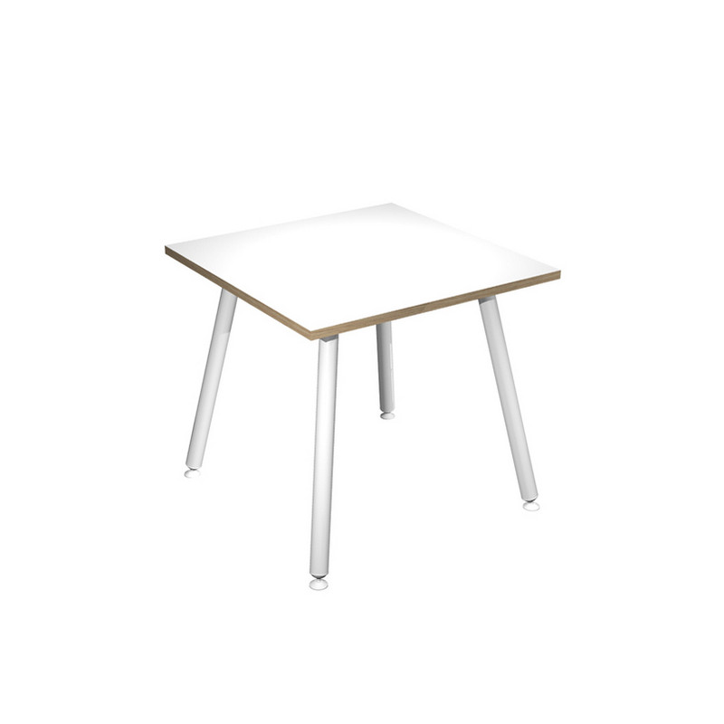 Linea di arredo operativo dal design innovativo e dinamico caratterizzata dalle gambe in metallo cilindriche inclinate delle scrivanie e dei tavoli rotondi. Robusti piani in melaminico sp. 22 mm con bordo antishock resistente agli urti in ABS 2mm. Gambe in metallo verniciato bianco (diam. 50 mm) complete di piedini livellabili in altezza.