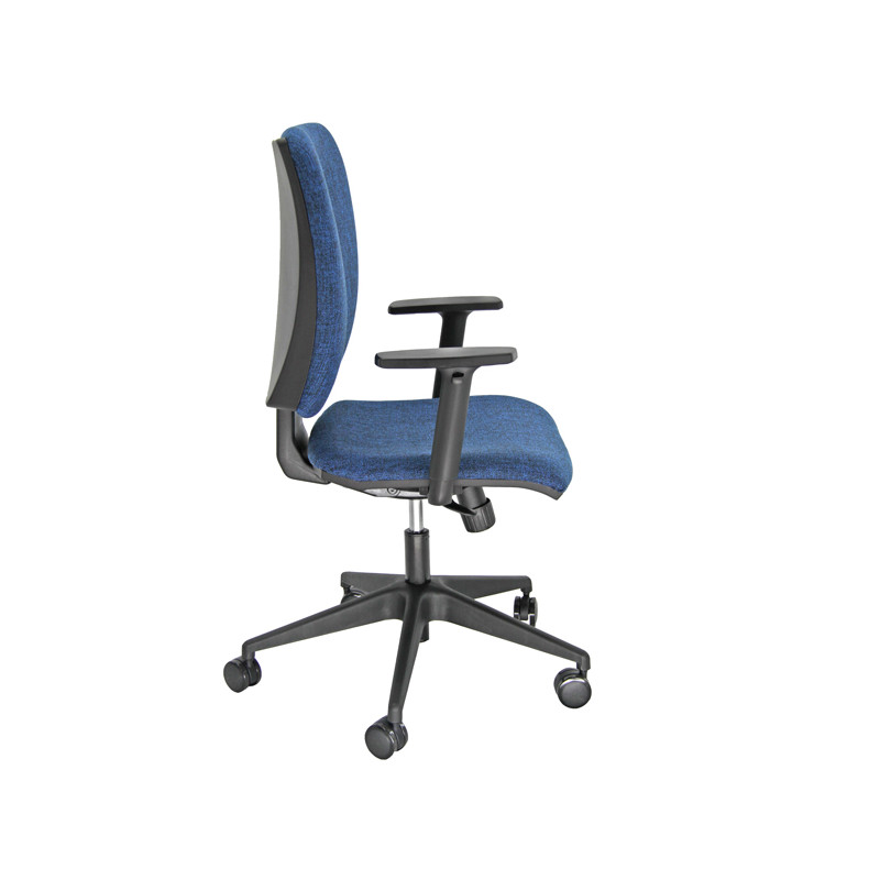 Sedia girevole operativa. Meccanismi: elevazione a gas - schienale regolabile up-down - meccanismo synchro con sedile traslabile - anti shock - meccanismo a contatto permanente. Rivestimento seduta in tessuto "SUPER - Expo" 100% poliestere e reazione al fuoco classe 1. Completa di braccioli regolabili. Alt.tot.: 97-109cm; Prof.tot.: 68cm; Alt.schienale: 46cm; Larg.schienale: 46cm; Larg.seduta: 50cm; Prof.Sedile: 46cm; Alt. sedile: 42-54cm.