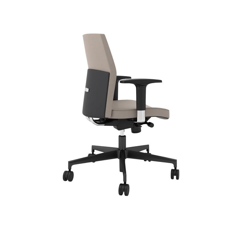 Seduta operativa girevole - elevazione a gas - meccanismo Syncro - 4 blocchi anti shock - meccanismo a contatto permanente - regolazione schienale up-down. Rivestimento seduta in tessuto "FASHION - Salò" 100% poliestere e certificazione di infiammabilità 1IM UNI 9175 EN 1021. Completa di braccioli regolabili. Alt.tot.: 98-109cm; Prof.tot.: 68cm; Alt.schienale: 55cm; Larg.schienale: 45cm; Larg.seduta: 46cm; Prof.Sedile: 46cm; Alt. sedile: 41-52cm.