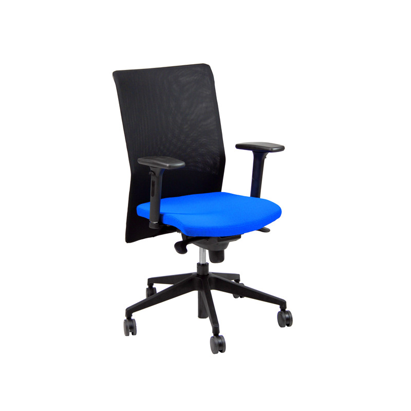 Seduta operativa girevole - elevazione a gas - meccanismo syncro - 4 blocchi anti shock - meccanismo a contatto permanente - regolazione schienale up-down. Rivestimento seduta in tessuto "PLUS - Ignifugo standard" in fibra modacrilica e reazione al fuoco classe 1. Completa di braccioli regolabili. Alt.tot.: 95-116cm; Prof.tot.: 68cm; Alt.schienale: 63cm; Larg.schienale: 47cm; Larg.seduta: 46cm; Prof.Sedile: 46cm; Alt. sedile: 41-52cm.