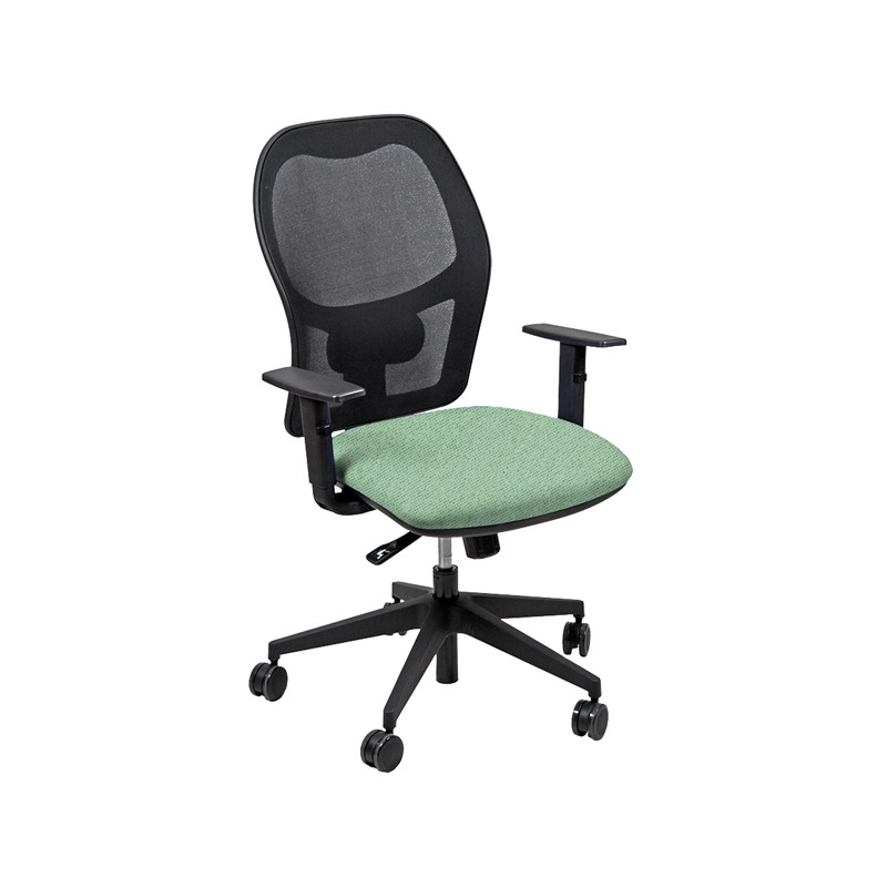 Seduta operativa girevole con elevazione a gas, meccanismo syncro, 4 blocchi anti shock e meccanismo a contatto permanente. Schienale con supporto lombare regolabile. Completa di braccioli regolabili. Rivestimento in tessuto "FASHION - Chili" 75% poliestere riciclato e certificazione di infiammabilità 1IM. Alt.tot: 102-113cm; Prof.tot: 68cm; Alt.schienale: 60cm; Largh.schienale: 48cm; Largh.sedile: 48cm; Prof.sedile: 46cm; Alt.sedile: 42-54cm.