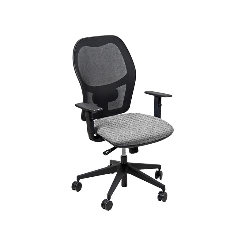 Seduta operativa girevole con elevazione a gas, meccanismo syncro, 4 blocchi anti shock e meccanismo a contatto permanente. Schienale con supporto lombare regolabile. Completa di braccioli regolabili. Rivestimento in tessuto "ECO-Eco" 100% polipropilene. Alt.tot: 102-113cm; Prof.tot: 68cm; Alt.schienale: 60cm; Largh.schienale: 48cm; Largh.sedile: 48cm; Prof.sedile: 46cm; Alt.sedile: 42-54cm.