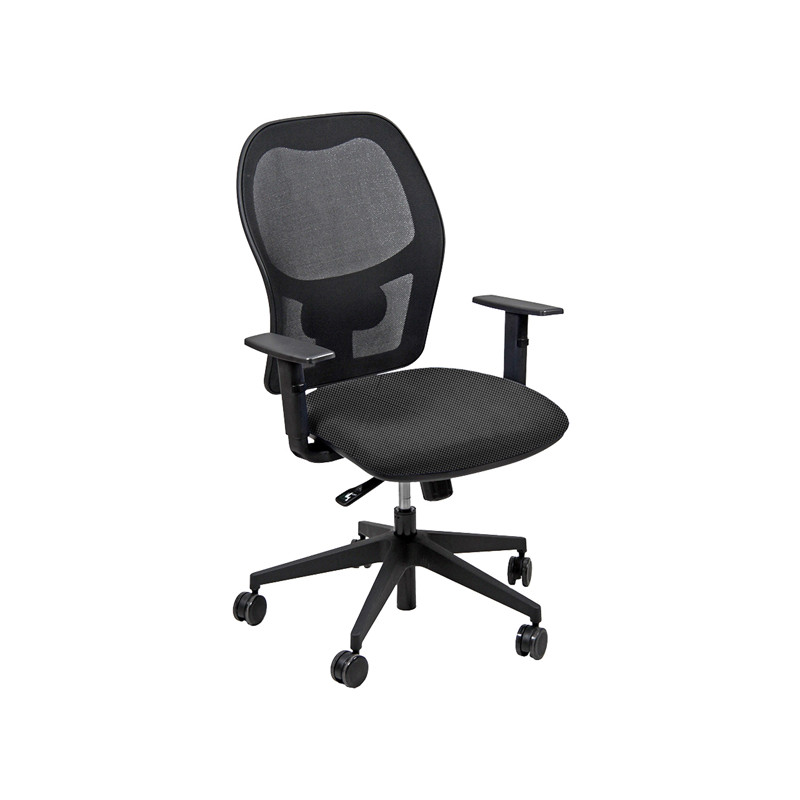 Seduta operativa girevole con elevazione a gas, meccanismo syncro, 4 blocchi anti shock e meccanismo a contatto permanente. Schienale con supporto lombare regolabile. Completa di braccioli regolabili. Rivestimento in tessuto "FASHION - Go Couture" 100% TREVIRA e certificazione di infiammabilità 1IM. Alt.tot: 102-113cm; Prof.tot: 68cm; Alt.schienale: 60cm; Largh.schienale: 48cm; Largh.sedile: 48cm; Prof.sedile: 46cm; Alt.sedile: 42-54cm.
