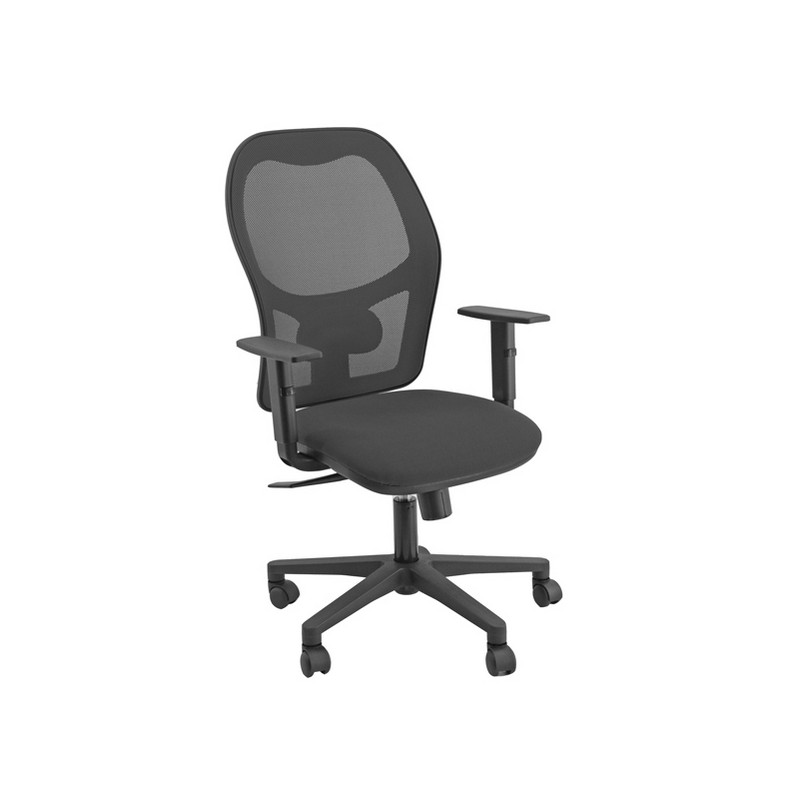 Seduta operativa girevole su ruote con schienale in rete nera- elevazione a gas - supporto lombare regolabile - meccanismo syncro tra sedile e schienale, a contatto permanente - schienale con ritorno controllato 3 blocchi. Rivestimento seduta in tessuto "ECO- Eco" 100% polipropilene. Completa di braccioli regolabili. Alt.tot.: 102-113cm; Prof.tot.: 63cm; Alt.schienale: 60cm; Larg.schienale: 48cm; Larg.seduta: 48cm; Prof.Sedile: 46cm; Alt. sedile: 42-54cm.
