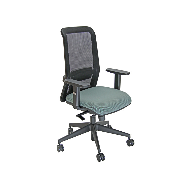 Sedia girevole su ruote operativa con schienale in rete elevazione a gas - supporto lombare regolabile - meccanismo con variatore di spinta synchro tra sedile e schienale, a contatto permanente con ritorno dello schienale controllato da 4 blocchi antishock - sedile dotato di traslatore (avanti e indietro). Rivestimento seduta in tessuto "FASHION - Go Couture" 100% TREVIRA e certificazione di infiammabilità 1IM UNI 9175. Completa di braccioli regolabili. Alt.tot.: 102-113cm; Prof.tot.: 70cm; Alt.schienale: 60cm; Larg.schienale: 45cm; Larg.seduta: 51cm; Prof.Sedile: 49-55cm; Alt. sedile: 42-54cm.