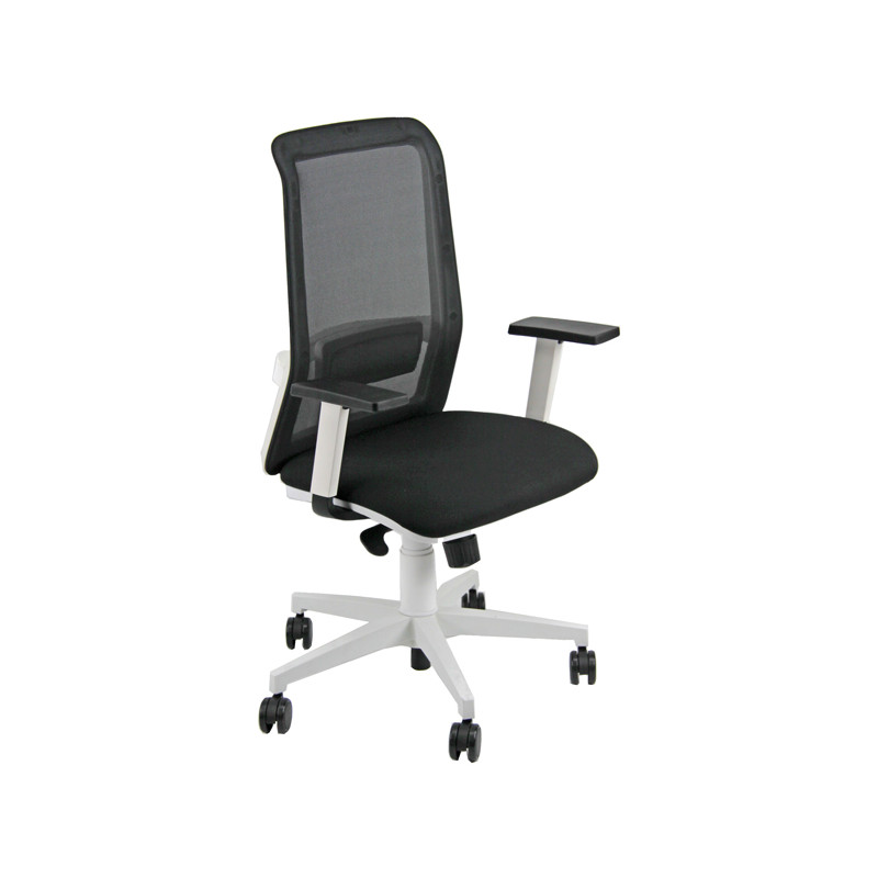 Sedia girevole su ruote operativa con schienale in rete elevazione a gas - supporto lombare regolabile - meccanismo con variatore di spinta synchro tra sedile e schienale, a contatto permanente con ritorno dello schienale controllato da 4 blocchi antishock - sedile dotato di traslatore (avanti e indietro). Rivestimento seduta in tessuto "PLUS - Ignifugo standard" in fibra modacrilica e reazione al fuoco classe 1. Completa di braccioli regolabili. Alt.tot.: 102-113cm; Prof.tot.: 70cm; Alt.schienale: 60cm; Larg.schienale: 45cm; Larg.seduta: 51cm; Prof.Sedile: 49-55cm; Alt. sedile: 42-54cm.