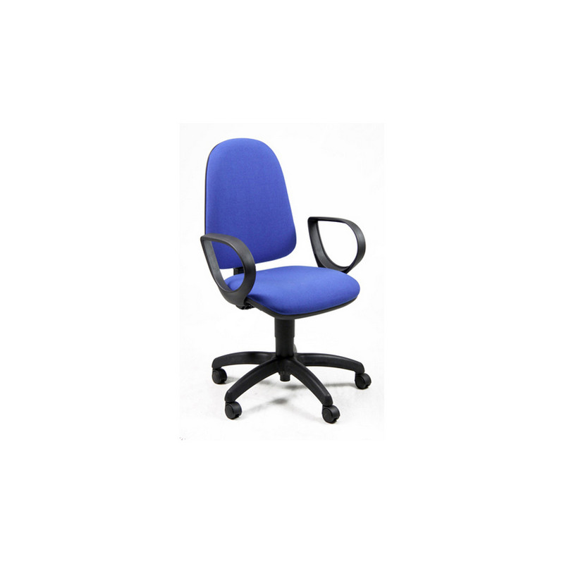 Sedia operativa girevole con base in nylon nero Ø 60cm. Struttura in acciaio nero e ruote in nylon Ø5cm. Imbottitura del sedile e dello schienale in spugna e PPL, rivestimento in acrilico. Braccioli inclusi. Elevazione a gas. Meccanismo a contatto permanente. Schienale regolabile in altezza e profondità. Altezza totale da 98 a 110cm.