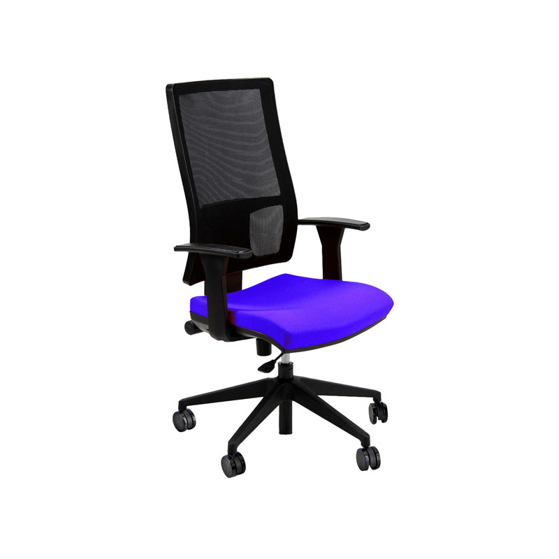 Seduta operativa girevole - elevazione a gas - meccanismo Syncro - 4 blocchi anti shock - meccanismo a contatto permanente - regolazione schienale up-down. Rivestimento seduta in tessuto "ECO- Eco" 100% polipropilene. Completa di braccioli regolabli. Alt.tot.: 110-122cm; Prof.tot.: 68cm; Alt.schienale: 61cm; Larg.schienale: 45cm; Larg.seduta: 50cm; Prof.Sedile: 46cm; Alt. sedile: 42-54cm.