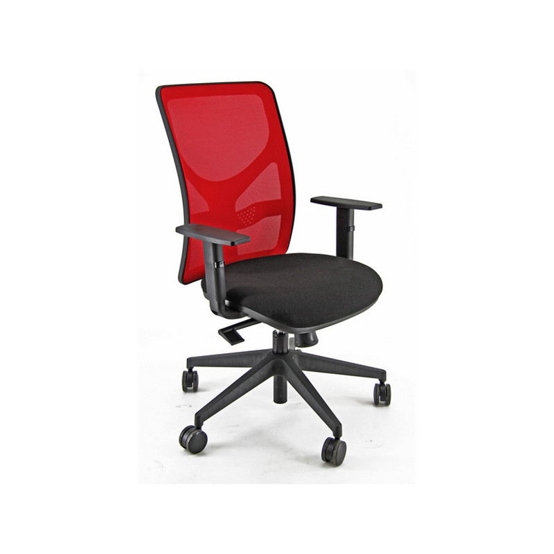 Seduta operativa adatta per uso standard/intenso. Schienale alto in rete colorata con supporto lombare regolabile. Rivestimento seduta in acrilico 100% colore nero. Braccioli regolabili e base in nylon. Meccanismo syncro con 4 blocchi. Meccanismo anti shock, meccanismo a contatto permanente. Elevazione a gas.