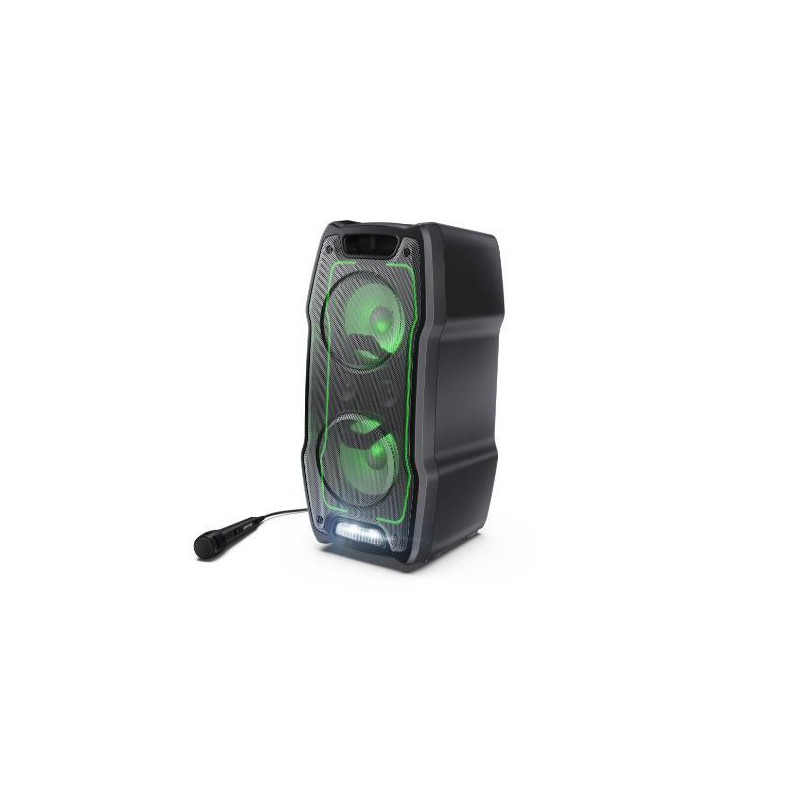 Collega il microfono cablato (incluso) e mostra le tue abilità di Karaoke agli amici e alla famiglia. Se ti va di fare un duetto, c'è un altro ingresso per collegare un secondo microfono.