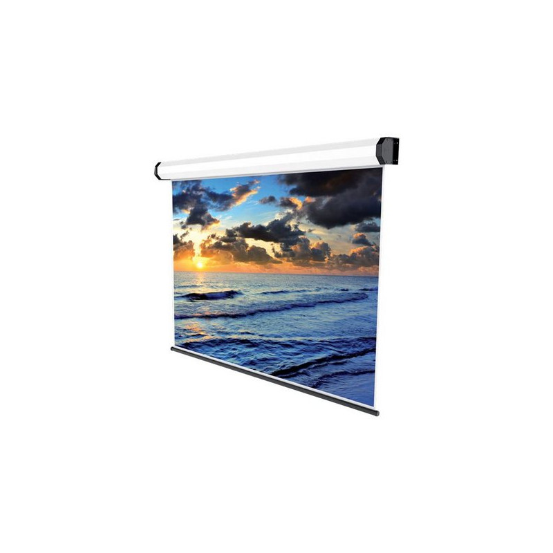 Lo schermo ad avvolgimento elettrico Professional realizzato con Tela Certificata M1 del Tipo Ignifugo ad Alta Riflettenza, è alloggiato in cassonetti di alluminio anodizzato e mosso da un motore di assoluta affidabilità. È facilmente montabile a parete o a soffitto mediante l'utilizzo di supporti in alluminio 'Bracket' combinati con un alloggio ad incastro nel telaio dello schermo (Easy Lock System).