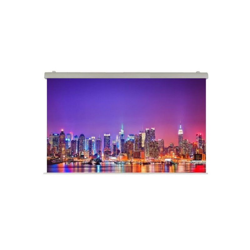 Monta una tela con Certificazione M1 del tipo Ignifugo ad Alta Riflettenza ed è ideale per sale riunioni importanti, meeting, sale congressi, grandi spazi ed eventi in fiere.