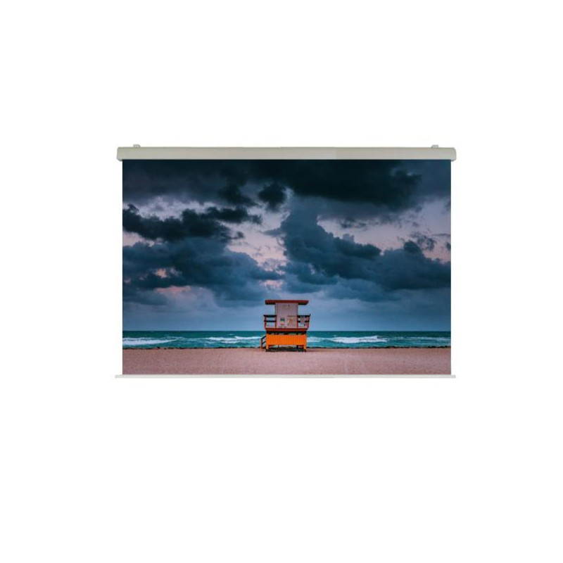 Monta una tela con Certificazione M1 del tipo Ignifugo ad Alta Riflettenza ed è ideale per sale riunioni importanti, meeting, sale congressi, grandi spazi ed eventi in fiere.