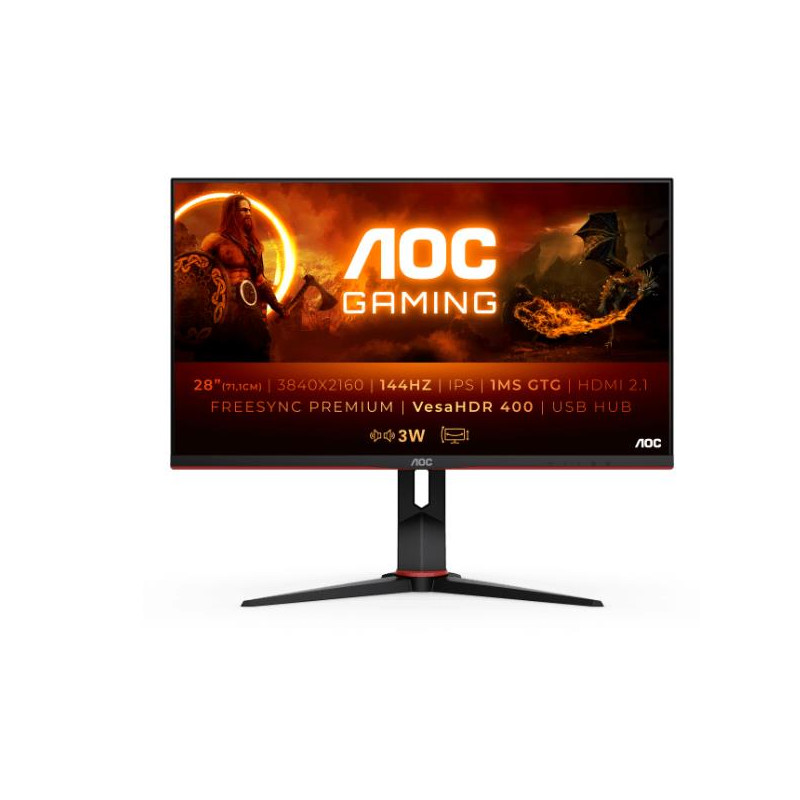 Nuovo monitor 4K UHD 3840x2160 con HDMI 2.1, 144 Hz, basso input lag e HDR400 certificato VESAMigliora la tua esperienza di gioco con la risoluzione 4K UHD 3840x2160. Goditi un'esperienza di gioco fluida e priva di ghosting per i tuoi giochi RTS e RPG preferiti con un tempo di risposta di 1 ms GtG, FreeSync Premium. La certificazione VESA HDR400 e una densità di pixel di 157 ppi garantisce una qualità dell'immagine e un'immersione sorprendenti. Ottieni il massimo dalle prestazioni della tua console grazie alla connettività HDMI 2.1. L'HUB USB integrato (4 porte) consente un facile accesso a periferiche e altri dispositivi. Nato per essere flessibile: U28G2XU2 è completamente inclinabile e girevole, e tramite il nostro software AOC G-Menu puoi personalizzare la visione in base alle tue esigenze.