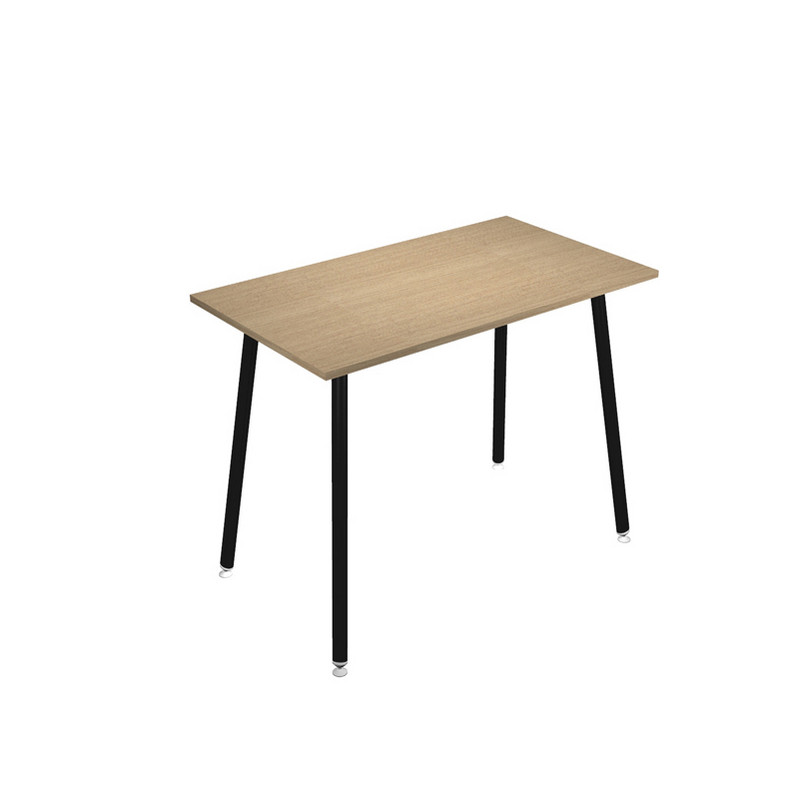 Linea di arredo operativo dal design innovativo e dinamico caratterizzata dalle gambe in metallo cilindriche inclinate delle scrivanie e dei tavoli rotondi. Robusti piani in melaminico sp. 22 mm con bordo antishock resistente agli urti in ABS 3 mm. Gambe in metallo verniciato nero (diam. 50 mm) complete di piedini livellabili in altezza. Materiale bilaminato nobilitato melaminico spessore 22 mm conforme norme UNI e EN classe E1. Tavoli alti di varie dimensioni ideali per garantire un pratico e veloce appoggio per riunioni, pause pranzo o caffè, briefing informali. Piani antigraffio e antiriflesso, stabili e robusti grazie alla struttura rafforzata da quattro travi in metallo di collegamento fra le gambe.