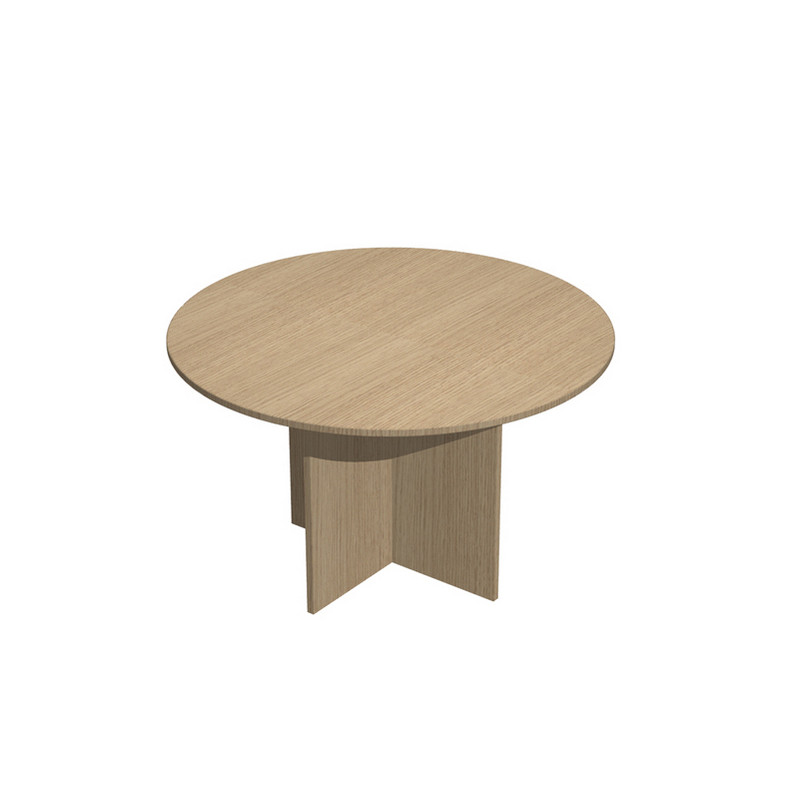 TAVOLO RIUNIONE tondo da 4 POSTI Ø120 x H72cm. Realizzato in melaminico spessore 22 mm, certificato classe E1. Piani bordati con profili antiurto sagomato, gambe in melaminico sp. 22 mm e piedini regolabili per la massima stabilità.