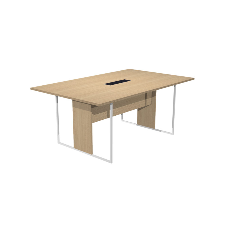 Desktop in melaminico bilaminato sp.22mm. 2 modesty panel strutturali in melaminico bilaminato H35cm (sp.18mm). Gambe ad anello in metallo a sezione quadrata 20x200mm verniciate a polveri epossidiche complete di piedini regolabili in altezza e montante strutturale in melaminico bilaminato di larghezza 30cm (spessore 18mm). Larghezza gamba 90cm.