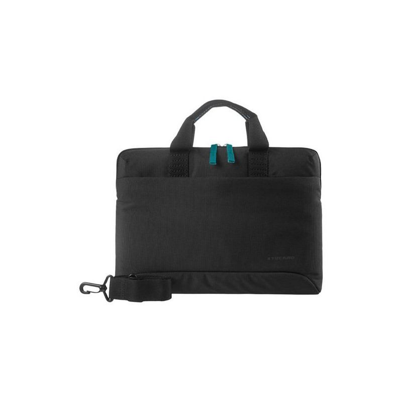 Questa è la borsa super slim in materiale tecnico con dettagli in contrasto colore per laptop fino a 14". Il vano interno unico con orecchie in neoprene si usa per bloccare il dispositivo. Il lato anteriore è dotato di una ampia tasca esterna.