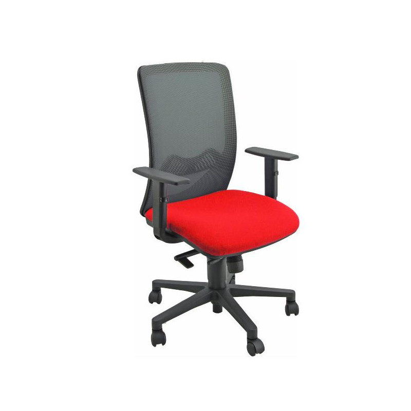 Interno sedile in faggio multistrato. Schienale con supporto in rete portante. Supporto lombare regolabile. Elevazione regolabile. Braccioli in polipropilene regolabili.